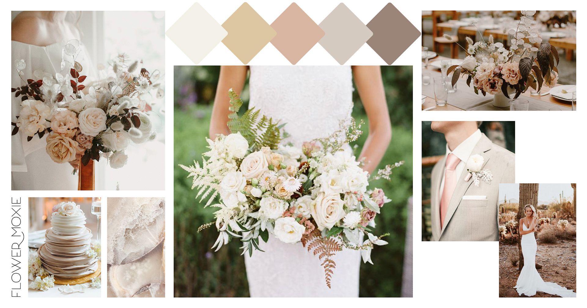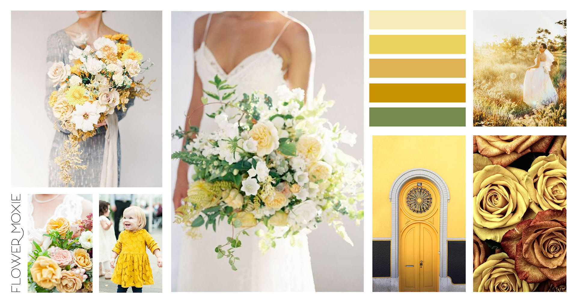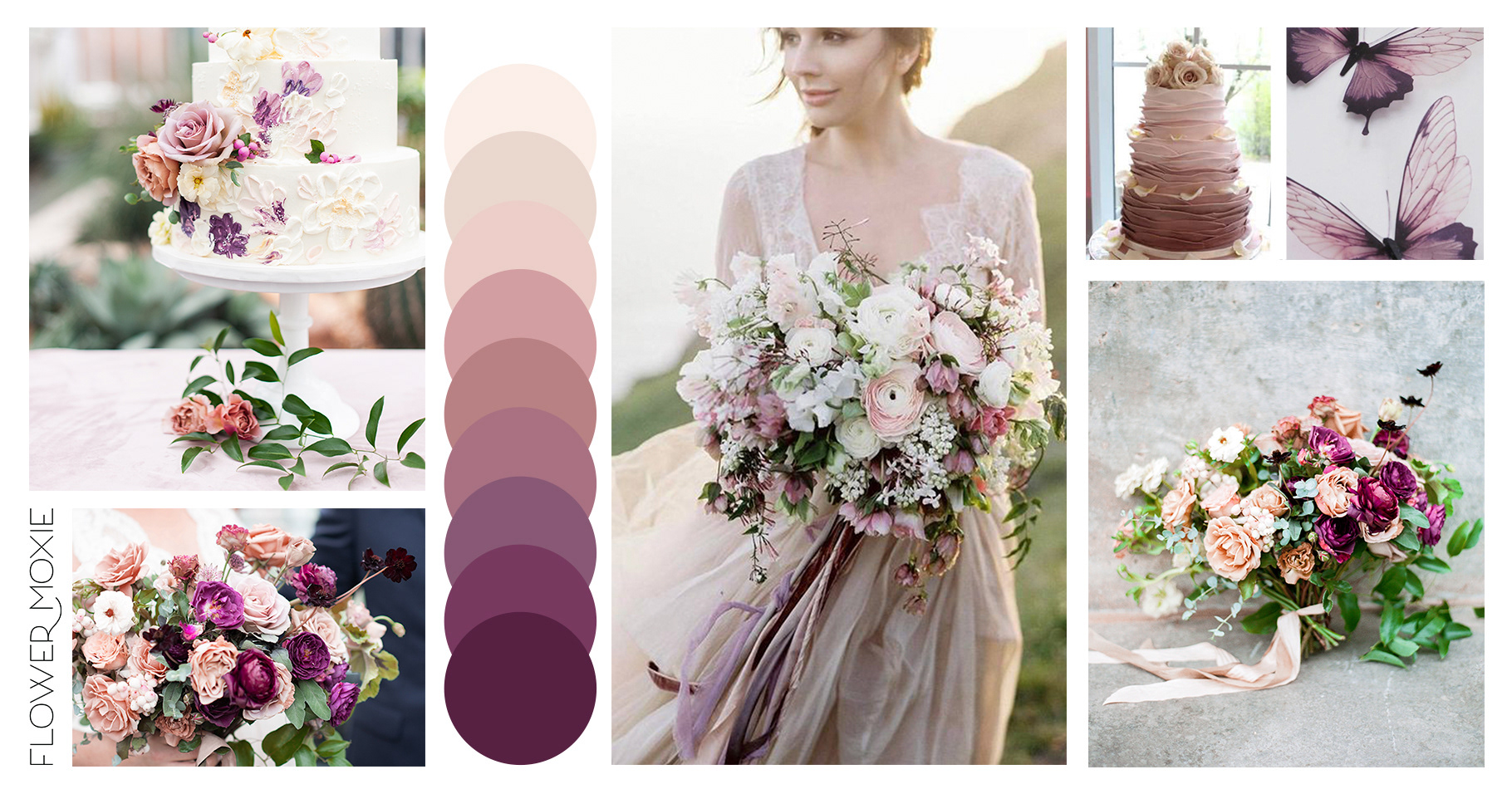 Sample of full-sized and mini moodboards created for floral inspiration as part of Flower Moxie's DIY flower packages.
